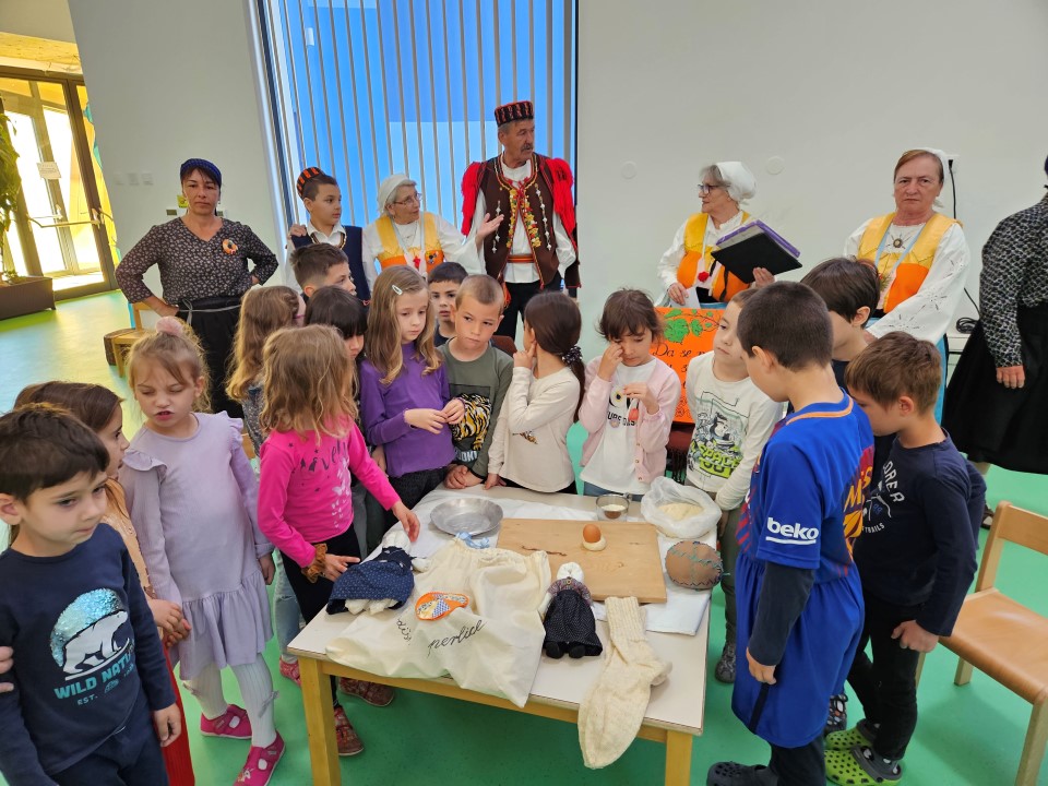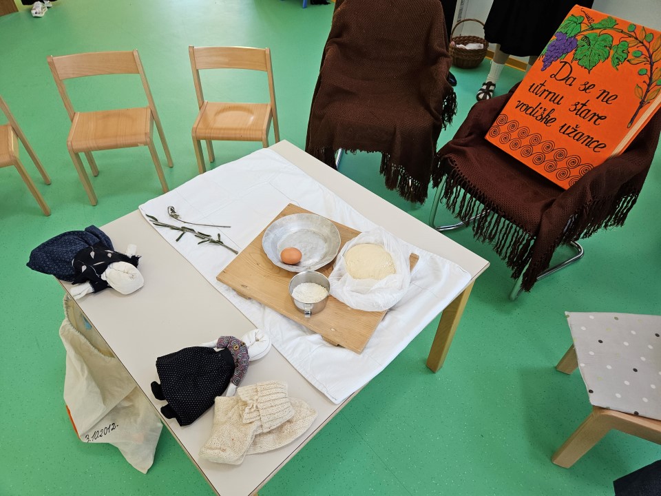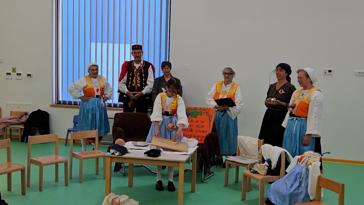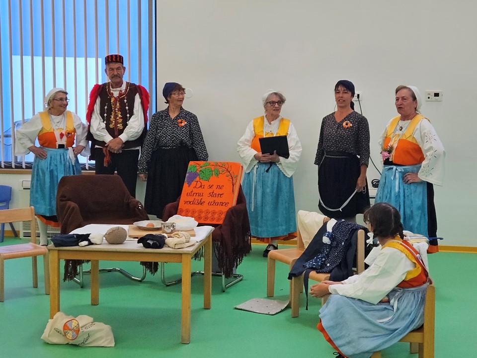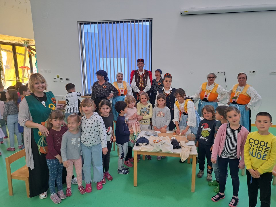 Baština slika određene životne zajednice nastala je kao posljedica brojnih povijesnih čimbenika i previranja i da bi skrb i očuvanje njezina identiteta bila djelotvorna, nužno je implementirati održivi razvoj u odgoj i obrazovanje djece od najranije dobi. Na taj će način dijete razvijati trajnu intrinzičnu potrebu za učenjem održivosti, te razvijati ljubav i svijest o ljepotama kulturne baštine koja će se onda uspješno prenositi s generacije na generaciju . Stoga su odgojiteljice Marija Periša i Marija Durmanić u svojoj skupini pokrenule projekt „Moje Vodice“ na kojem rade cijelu godinu. Ususret Danu grada Vodica,danas su u goste pozvale Kulturnu udrugu Perlice koja je djeci pokazala dio bogate baštine kao što su stari načini odijevanja, dijelovi narodne nošnje, stare dječje igre ( kuzbaj, krpene lutke, laštika,...), izrada vodiške karitule, star napjevi,ponovili su vodišku abecedu i stare nazive mjeseca u kalendaru.