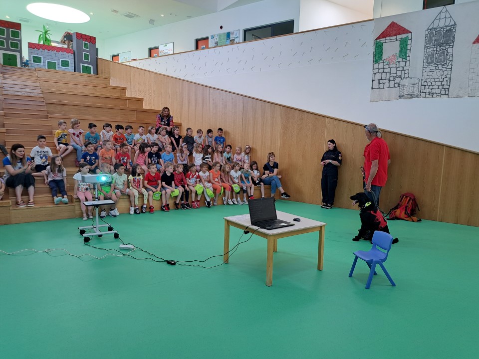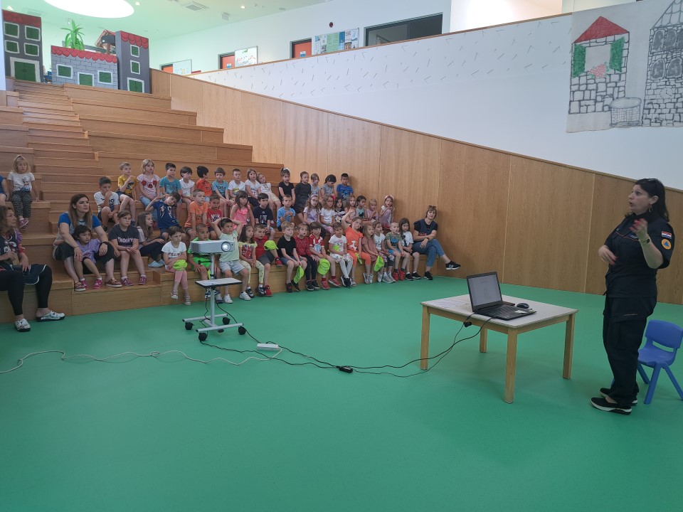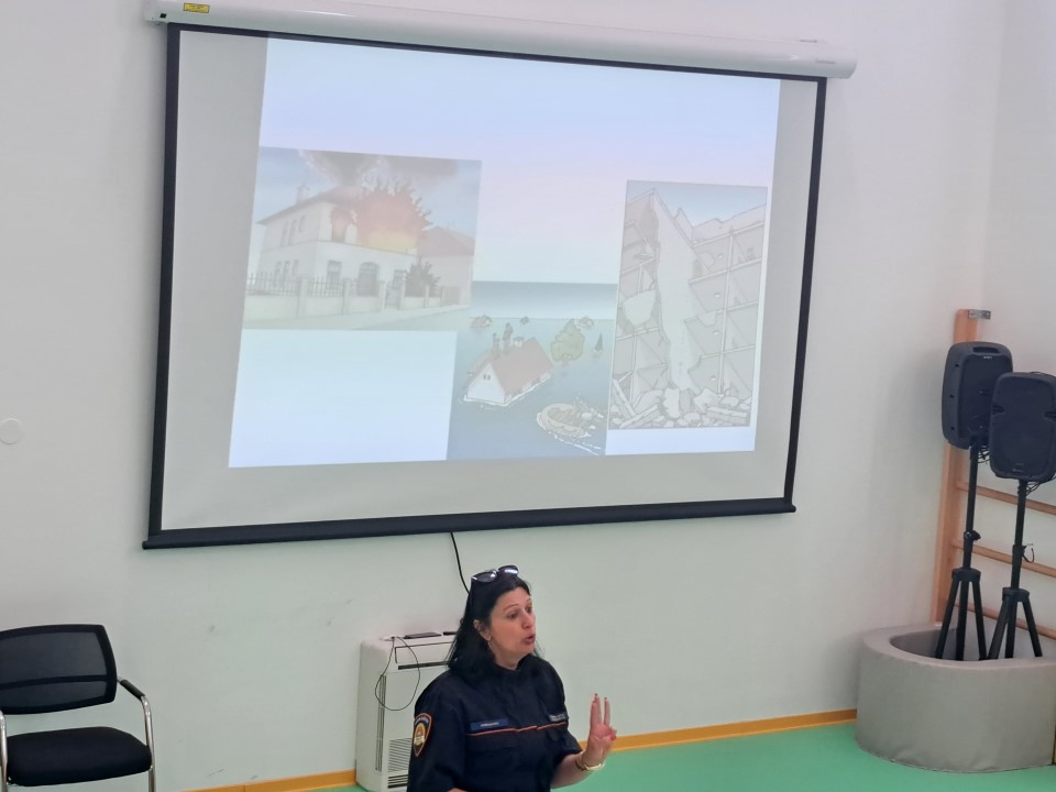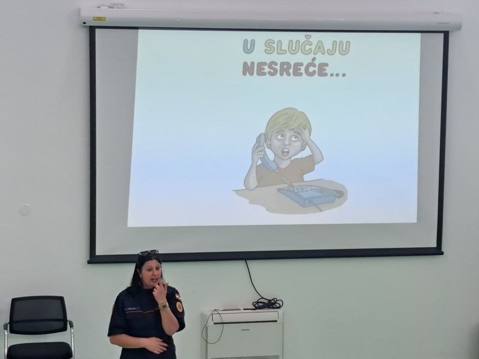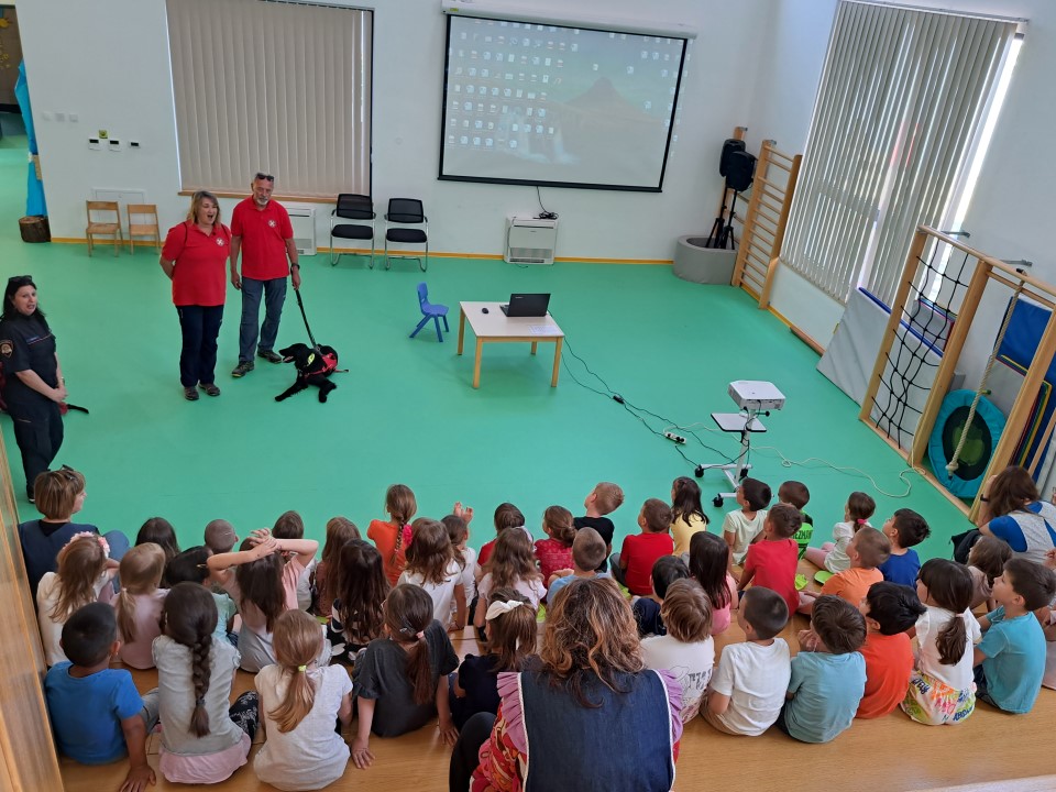 Nakon posjete vatrogasaca iz JVP Vodice, u dječji vrtić Tamaris stigli su i predstavnici Ravnateljstva civilne zaštite, služba civilne zaštite Šibenik Ivona Slavica i članovi Hrvatske gorske službe spašavanja (HGSS) Blanka Lučić pročelčelnica šibenske stanice i Ante Ercegović vodič i dreser s mladim potražnim psom Tunjom. Voditeljica odjela za preventivne i planske poslove Ivona Slavica održala je edukaciju djece u području zaštite i spašavanja u skladu s programom Nacionalne akcije edukacije djece u području zaštite i spašavanja. Sudjelovala su djeca u 7.-oj godini života. Kroz power-point prezentaciju djecu je upoznala s prirodnim i drugim nesrećama (požar, poplava, potres i sl.), njihovim posljedicama, ulogom žurnih službi u spašavanju osoba i imovine te s jedinstvenim brojem za žurne pozive 112. Djeca su također upoznata s načinom ponašanja u cilju otklanjanja mogućnosti za izazivanje požara, potresa i drugih neželjenih situacija, te načinu reagiranja u opasnim situacijama u kojem se mogu zateći tijekom svakodnevnice. U praktičnom dijelu edukacije članovi Hrvatske gorske službe spašavanja prezentirali su djeci svoju ulogu i aktivnosti u zaštiti i spašavanju ljudi i imovine, Posebnu pozornost djece izazvao je mladi potražni pas Tunja.