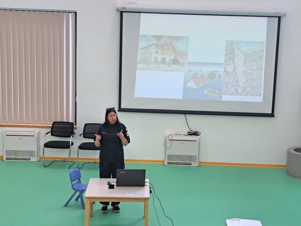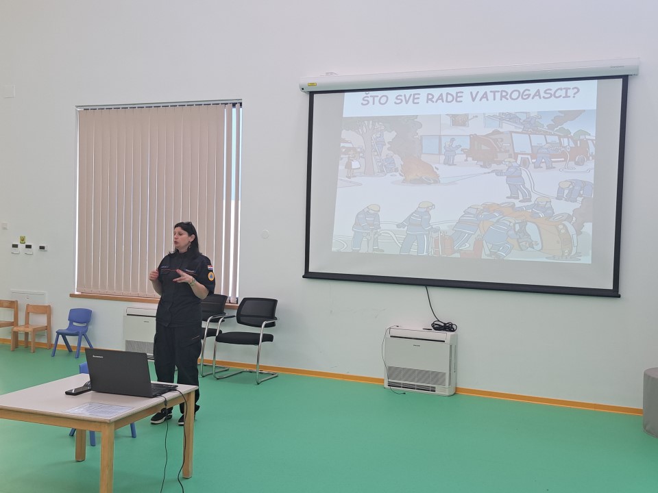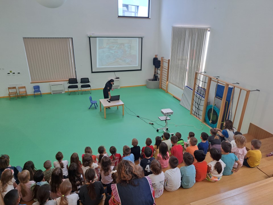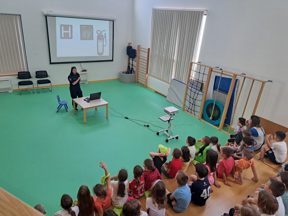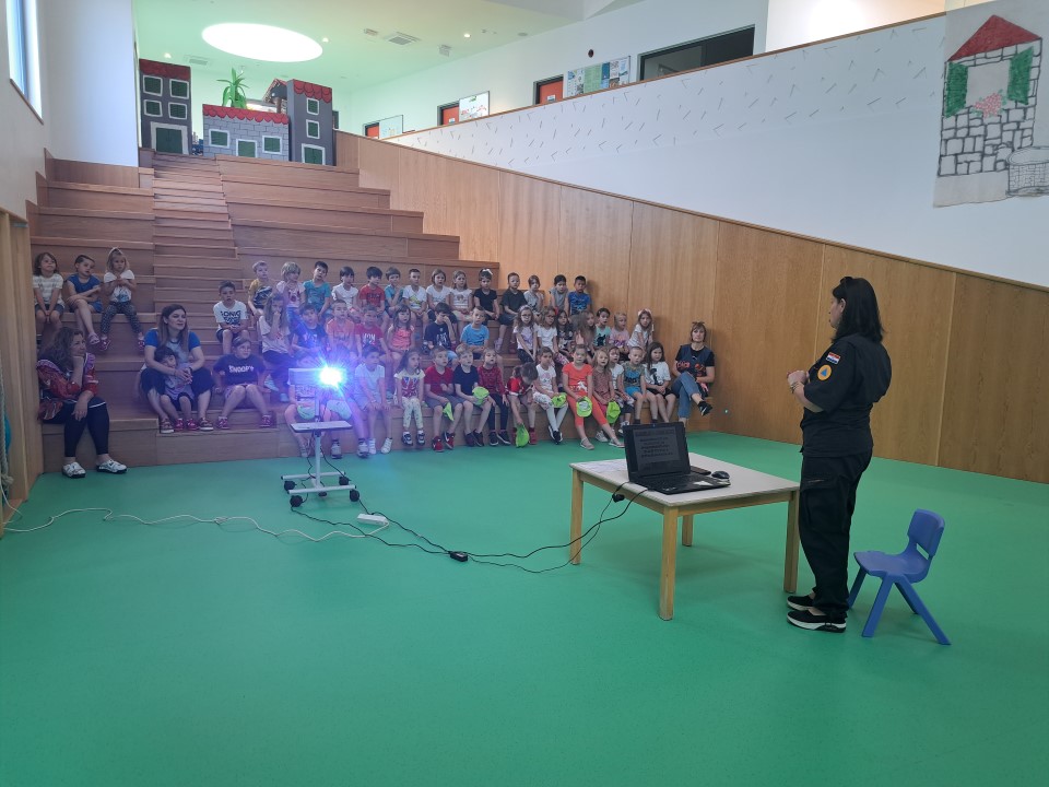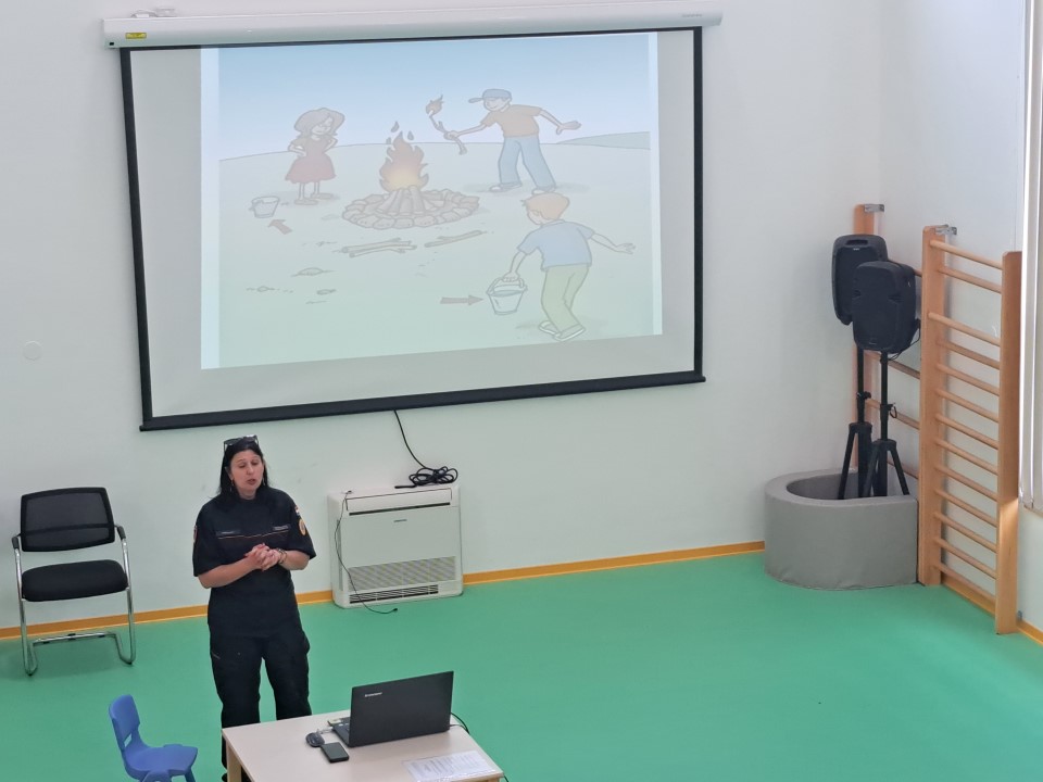 Nakon posjete vatrogasaca iz JVP Vodice, u dječji vrtić Tamaris stigli su i predstavnici Ravnateljstva civilne zaštite, služba civilne zaštite Šibenik Ivona Slavica i članovi Hrvatske gorske službe spašavanja (HGSS) Blanka Lučić pročelčelnica šibenske stanice i Ante Ercegović vodič i dreser s mladim potražnim psom Tunjom. Voditeljica odjela za preventivne i planske poslove Ivona Slavica održala je edukaciju djece u području zaštite i spašavanja u skladu s programom Nacionalne akcije edukacije djece u području zaštite i spašavanja. Sudjelovala su djeca u 7.-oj godini života. Kroz power-point prezentaciju djecu je upoznala s prirodnim i drugim nesrećama (požar, poplava, potres i sl.), njihovim posljedicama, ulogom žurnih službi u spašavanju osoba i imovine te s jedinstvenim brojem za žurne pozive 112. Djeca su također upoznata s načinom ponašanja u cilju otklanjanja mogućnosti za izazivanje požara, potresa i drugih neželjenih situacija, te načinu reagiranja u opasnim situacijama u kojem se mogu zateći tijekom svakodnevnice. U praktičnom dijelu edukacije članovi Hrvatske gorske službe spašavanja prezentirali su djeci svoju ulogu i aktivnosti u zaštiti i spašavanju ljudi i imovine, Posebnu pozornost djece izazvao je mladi potražni pas Tunja.